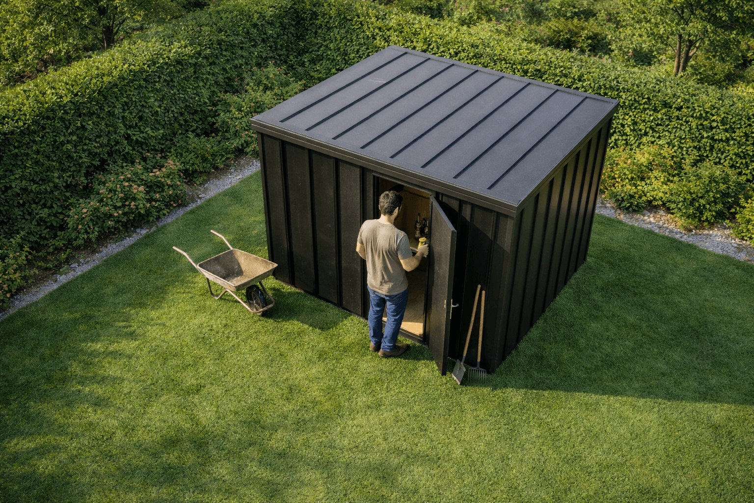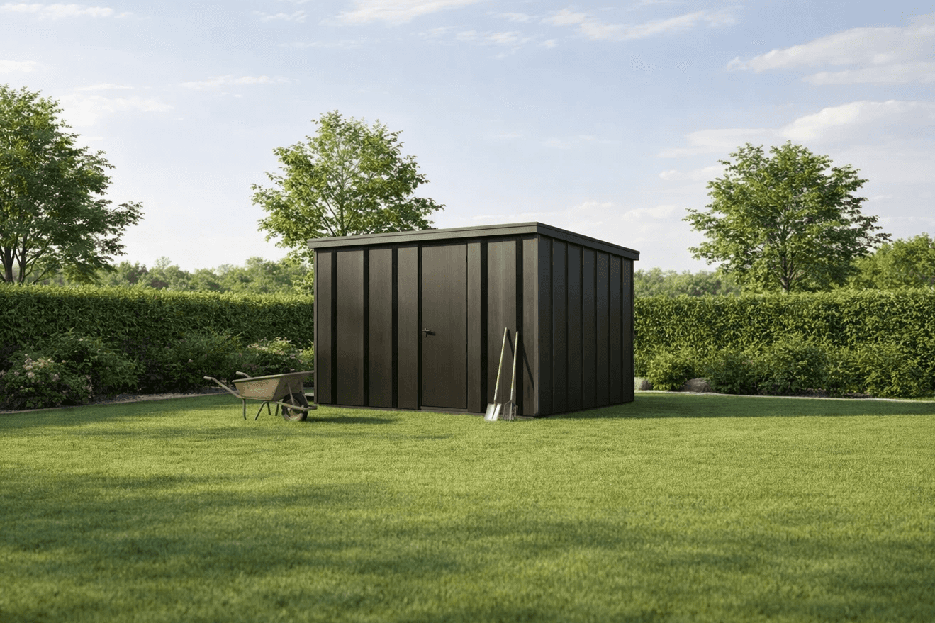Estetyczne miejsce do przechowywania narzędzi, które pasuje do twojej działki.